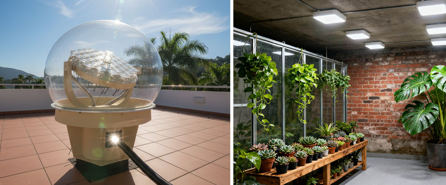 It is one of the most innovative solutions in modern green buildings, combining solar tracking, optical engineering, and energy-saving design.